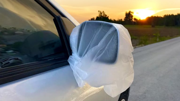 94.  Cover Your Car Mirror with a Plastic Bag – Here’s Why