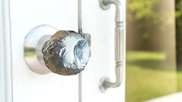 When painting, cover your doorknobs and hinges with foil. It’s much easier to peel off than tape. Save the tape for door frames and baseboards where you need neat edges.